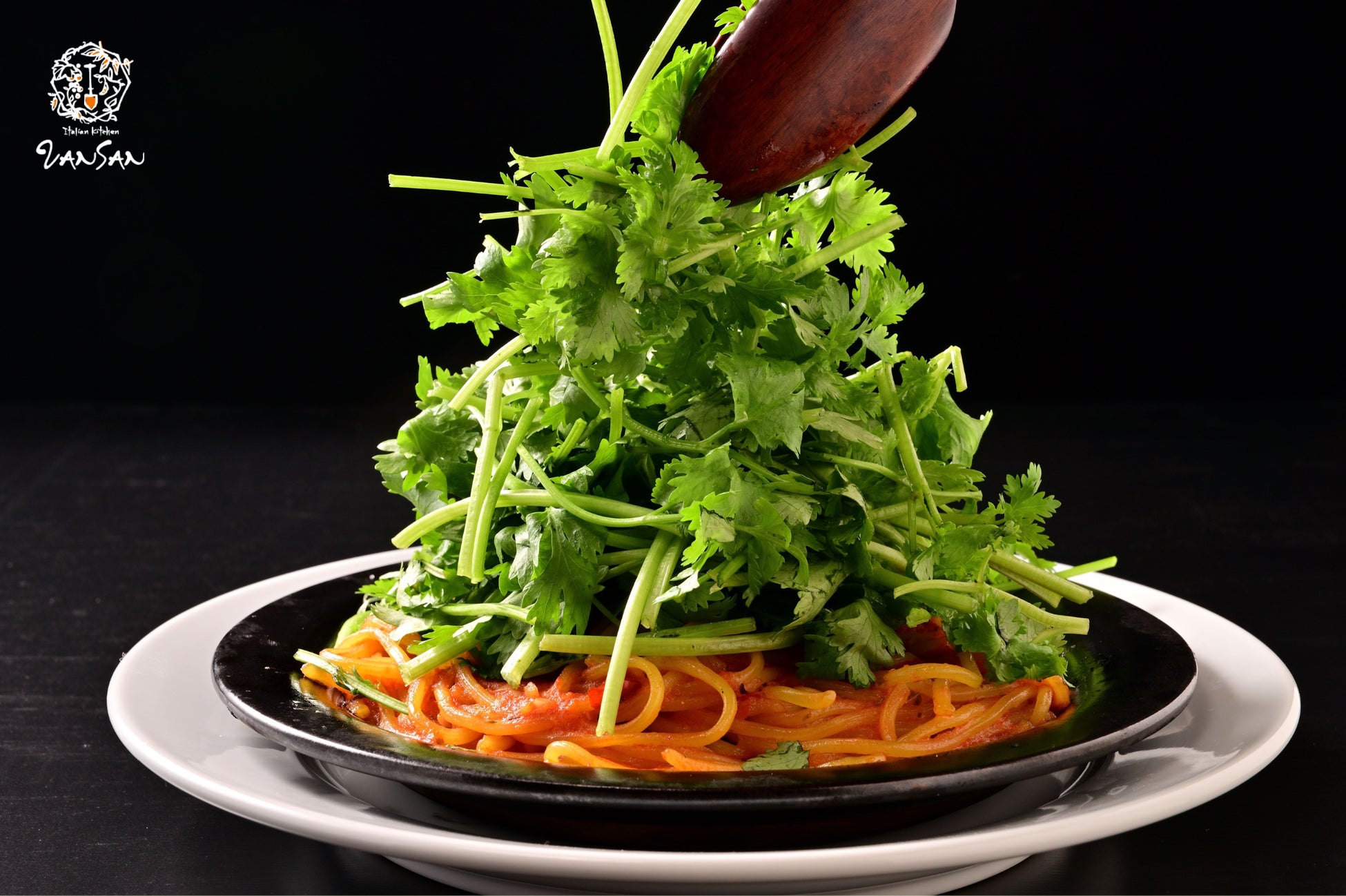 お客様が「ストップ!」と言うまでのせ続けるVANSANの看板メニュー“のせ放題パスタ”に、パクチーのせ放題の「灼熱のパクチニスト」が新登場します。辛さを選べるVANSAN名物「悪魔パスタ」の上にパクチーをどっさりのせてお召し上がりいただけます。