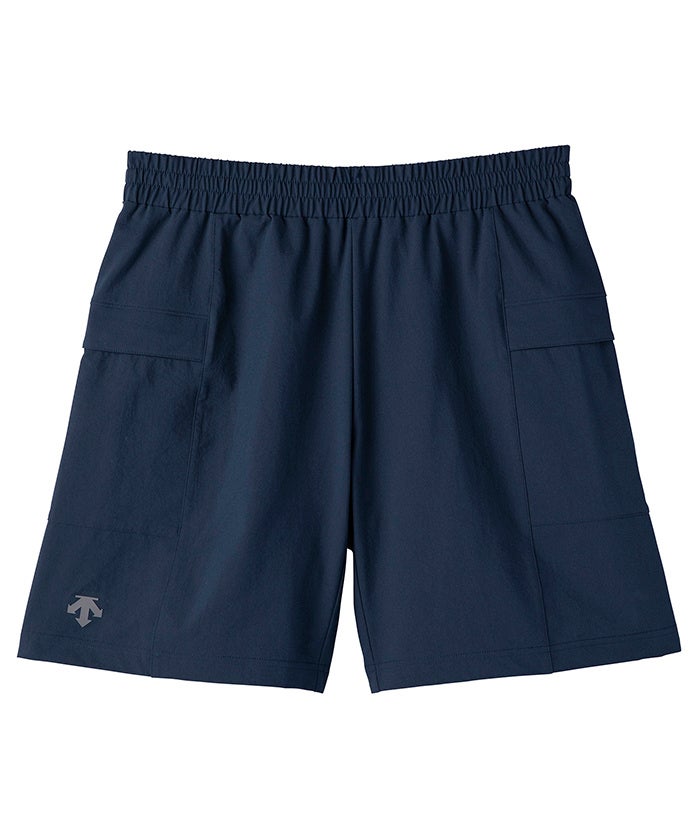 しなやかなストレッチウーブン素材を使用したトレーニングショートパンツはウエストを自在に絞れるウエストスピンドル仕様。両サイドポケットの端が水抜け処理された水陸両用のショートパンツで、はっ水性によりアウトドアレジャー時に気になる水を弾きます。パンツ背面はふらし仕様のベンチレーションになっており、夏場に気になるお尻周りの蒸れ軽減と水抜けを考慮したデザインになっています。
