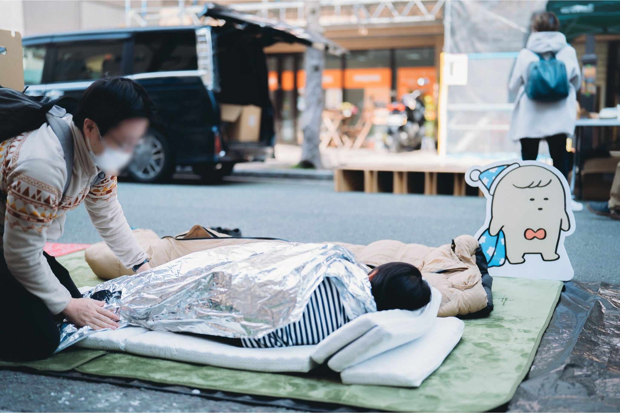 本イベントでは、マルシェや地域企画も同時開催され、地元住民が気軽に防災に触れられる機会となりました。会場では、避難生活を想定した睡眠環境を体験できるブースを設置し、実際の寝心地を体感いただきました。