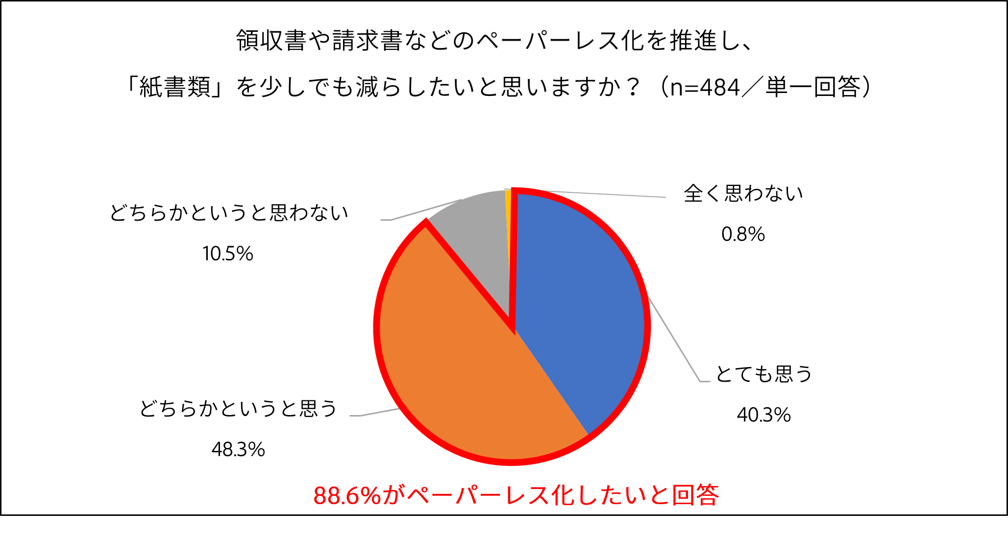 - 領収書や請求書などを「紙書類」で管理している層の88.6%がペーパーレス化を希望する一方で半数以上が実行できていないと回答、OCR(光学文字認識)機能の利用経験者は3割未満