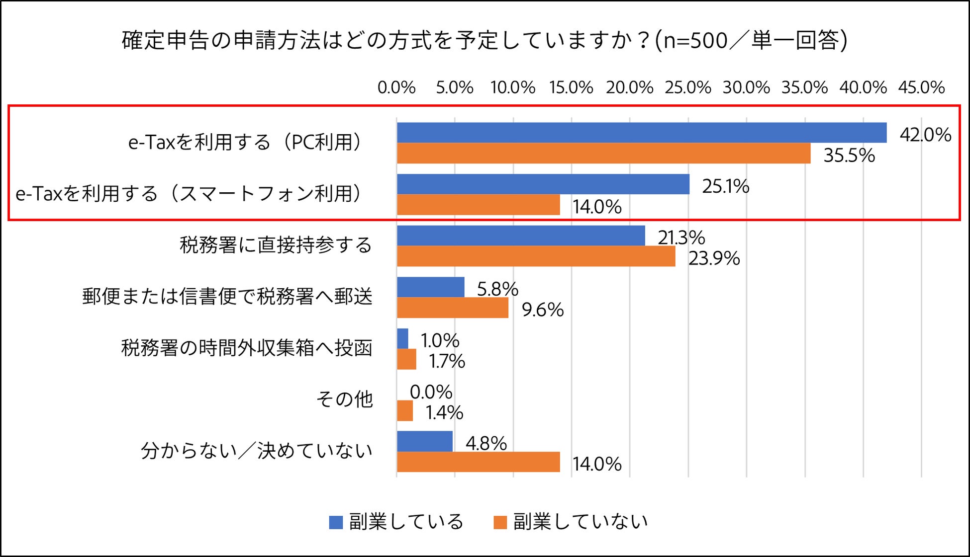 - 副業者の約8割が確定申告について理解できていると認識、約7割がe-Taxおよびマイナポータル連携といったデジタルサービスを利用予定