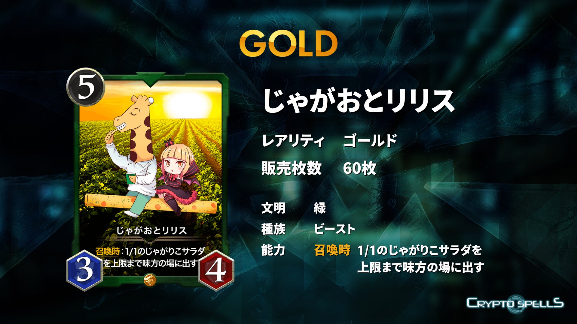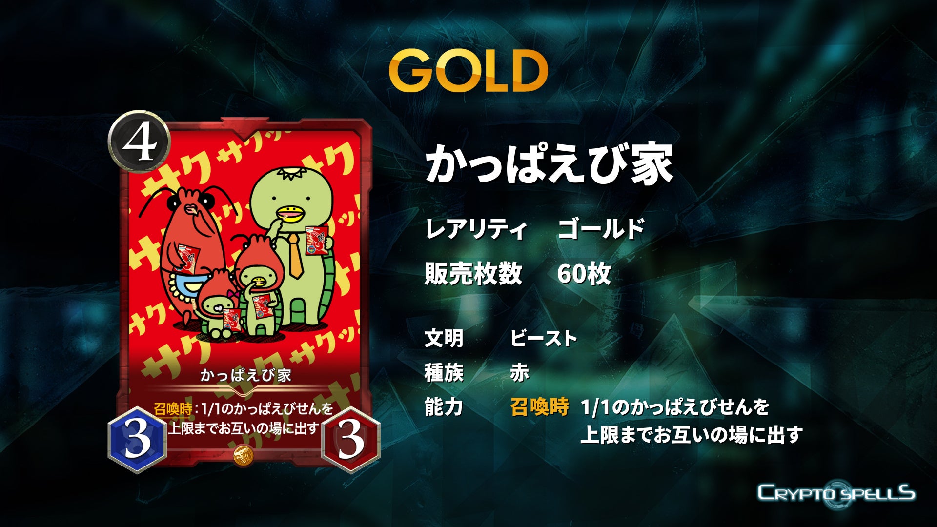 ブロックチェーンゲーム「クリプトスペルズ」を運営するCryptoGames株式会社(東京都渋谷区、代表取締役:小澤 孝太)は、カルビー株式会社(本社:東京都千代田区、代表取締役社長兼CEO:江原信、以下「カルビー」)および、株式会社博報堂キースリー(本社:東京都港区、代表取締役社長:重松俊範、以下、博報堂キースリー)と共に、カルビーの「じゃがりこ」「かっぱえびせん」とクリプトスペルズのコラボNFT販売が決定したことをお知らせ致します。