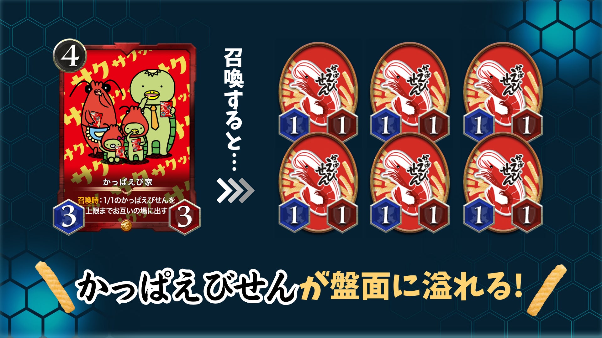 召喚時:1/1のかっぱえびせんを上限までお互いの場に出す