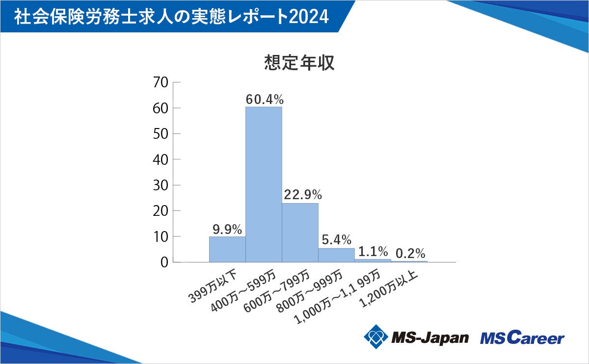 社労士求人の想定年収において、60.4%が「400~599万円」でした。