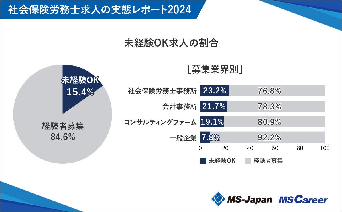 未経験でも応募可能な社労士求人の割合を調査したところ、15.4%という結果でした。