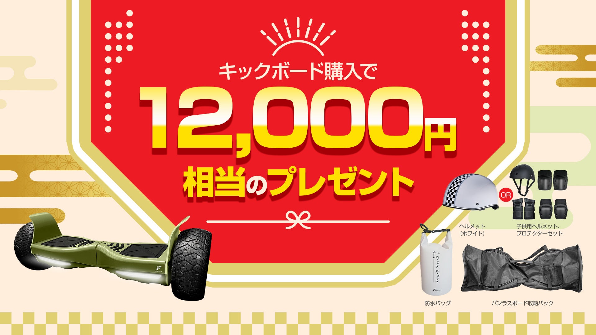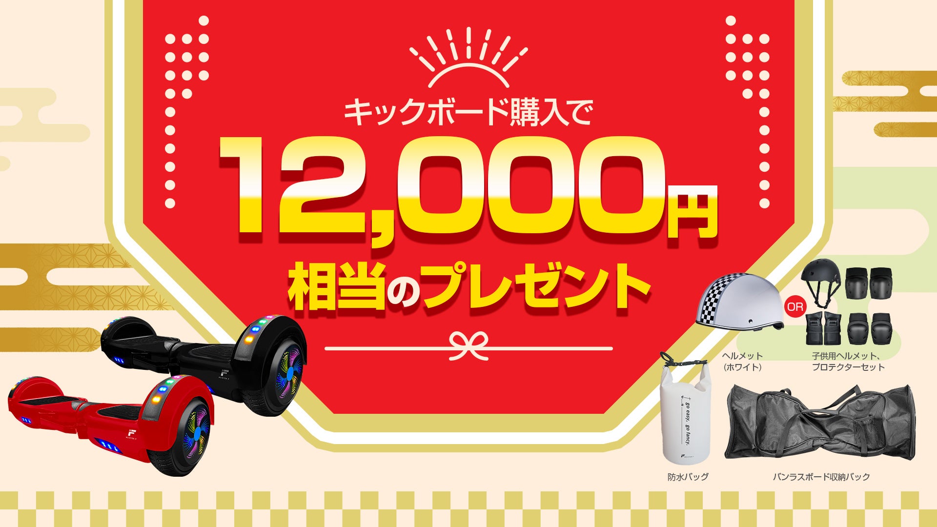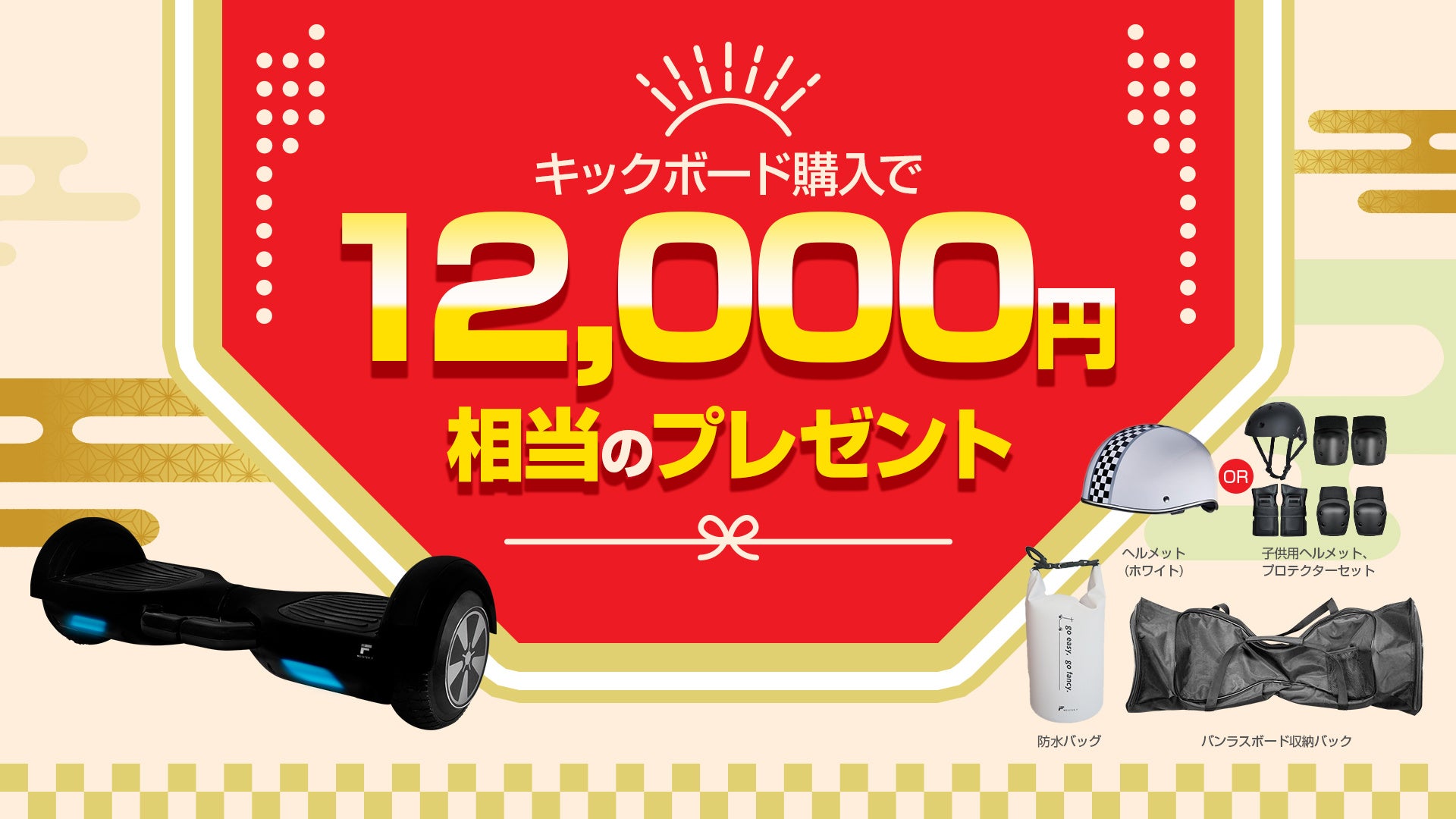 12,000円相当のプレゼント!楽天市場Show !t、電動バランスボード購入でヘルメットorプロテクターと収納バッグがもらえるキャンペーンを実施。12月19日開始、楽天大感謝祭に参加