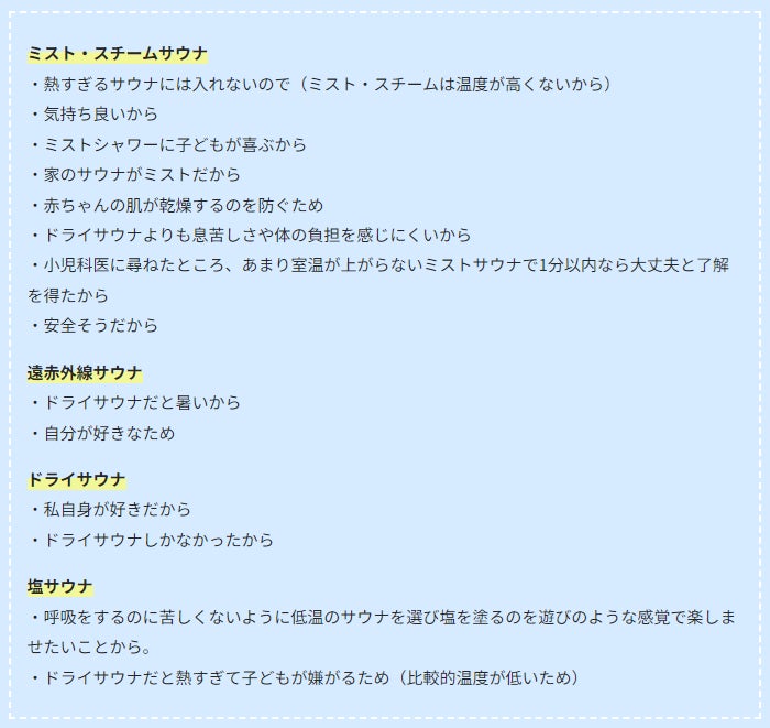 利用するサウナはミスト・スチームが8割!乳児とサウナ利用の実態調査【Part2】