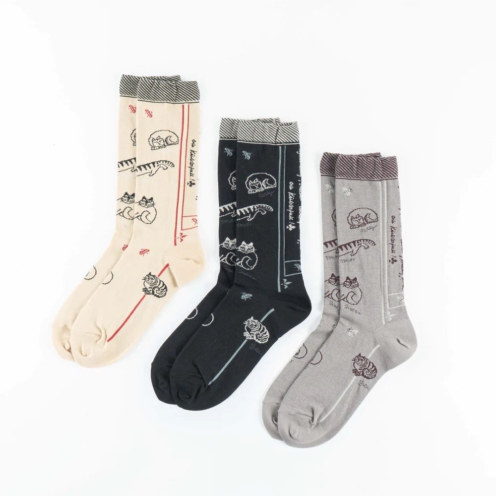 ・ANTIPASTソックス(スケッチねこたち)ベージュ、ブラック、グレー 各1足ずつ
