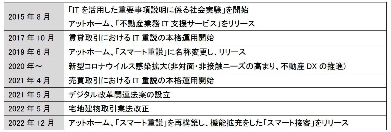 2015年8月、国土交通省は「ITを活用した重要事項説明に係る社会実験」を開始しました。それに伴いアットホームではオンライン上で接客、内見、重説を行う「不動産業務IT支援サービス」の提供をしてまいりました。2019年にはIT重説に特化した「スマート重説」に名称を変更しましたが、2020年春以降の新型コロナウイルス感染拡大や2022年5月の宅地建物取引業法改正により、不動産業界でも非対面・非接触で接客する機会が増え、オンラインで円滑にコミュニケーションできる基盤となるツールが必要だと考えました。