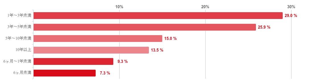 「1年〜3年未満」が29.0%で最も多く、「3年〜5年未満」が25.9%でこれに続いた。