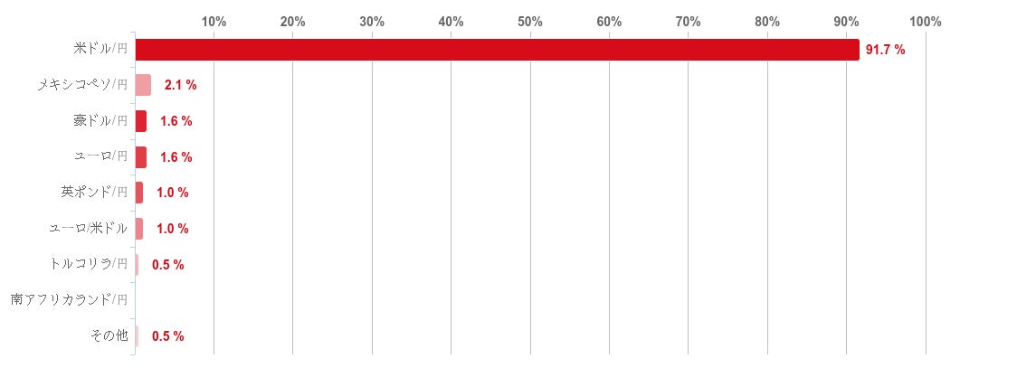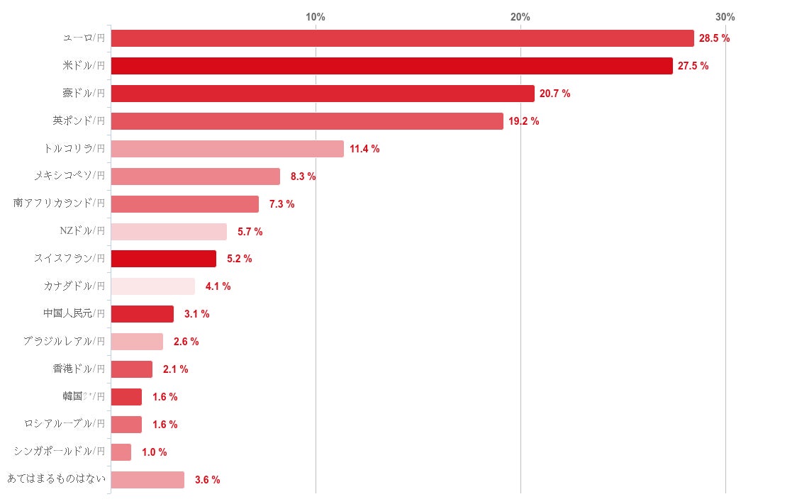 なお、そのほかは「メキシコペソ/円」が2.1%、「豪ドル/円」と「ユーロ/円」が1.6%だった。
