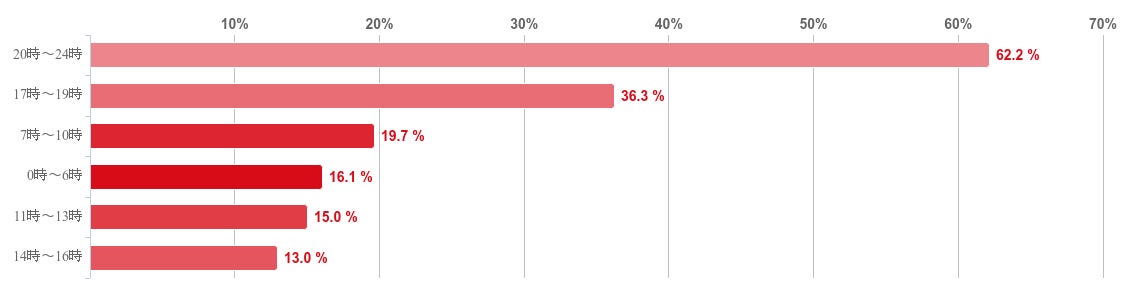 「20時〜24時」が62.2%で圧倒的に多かった。
