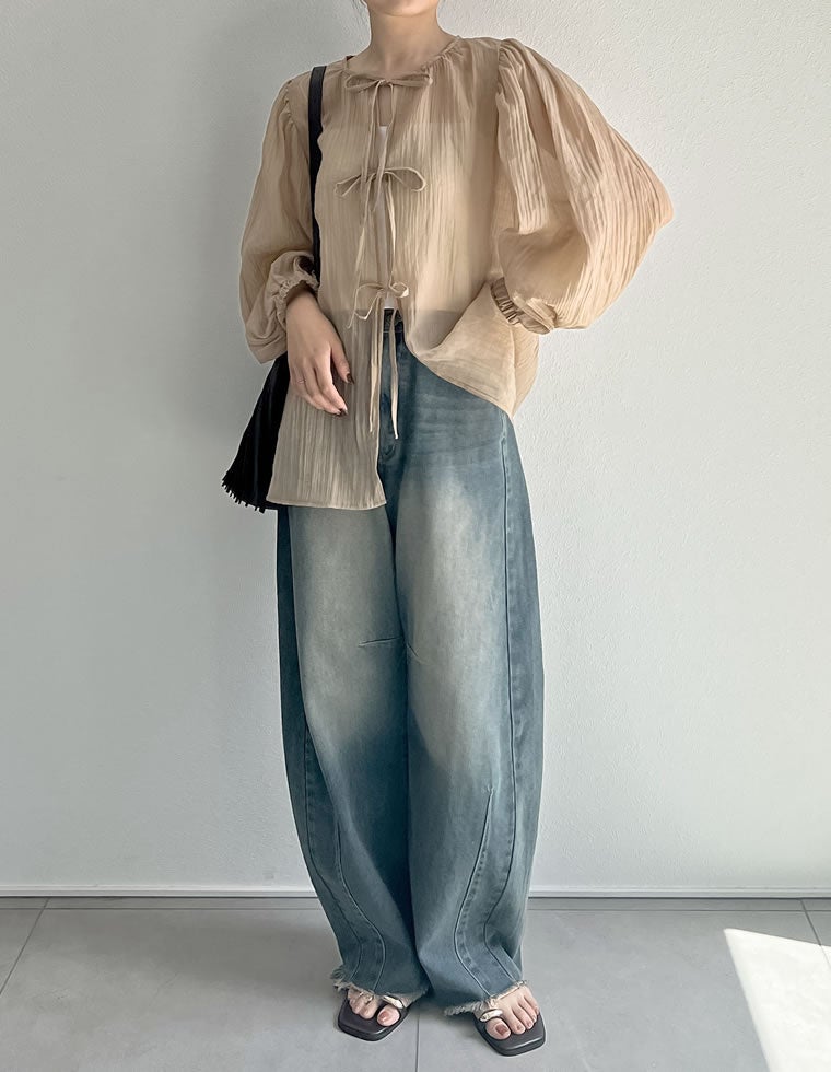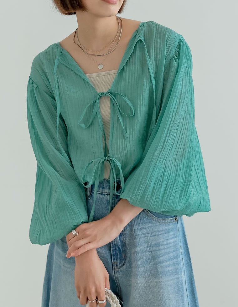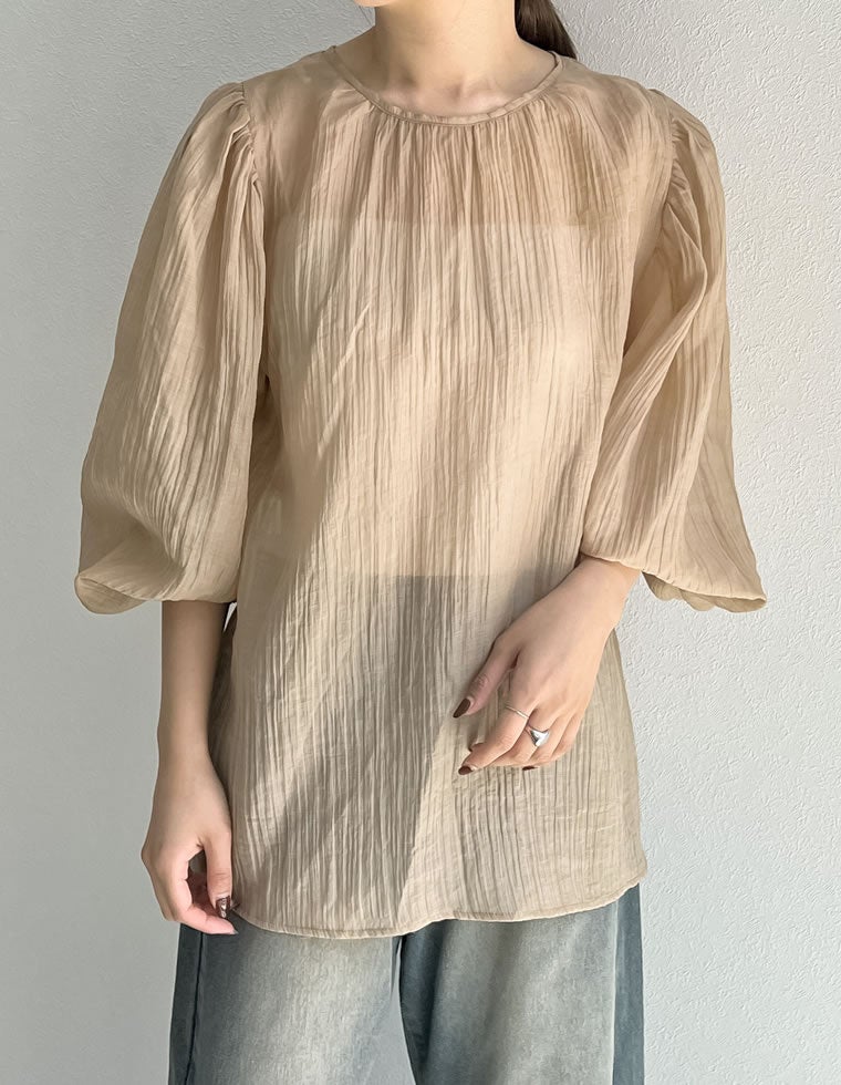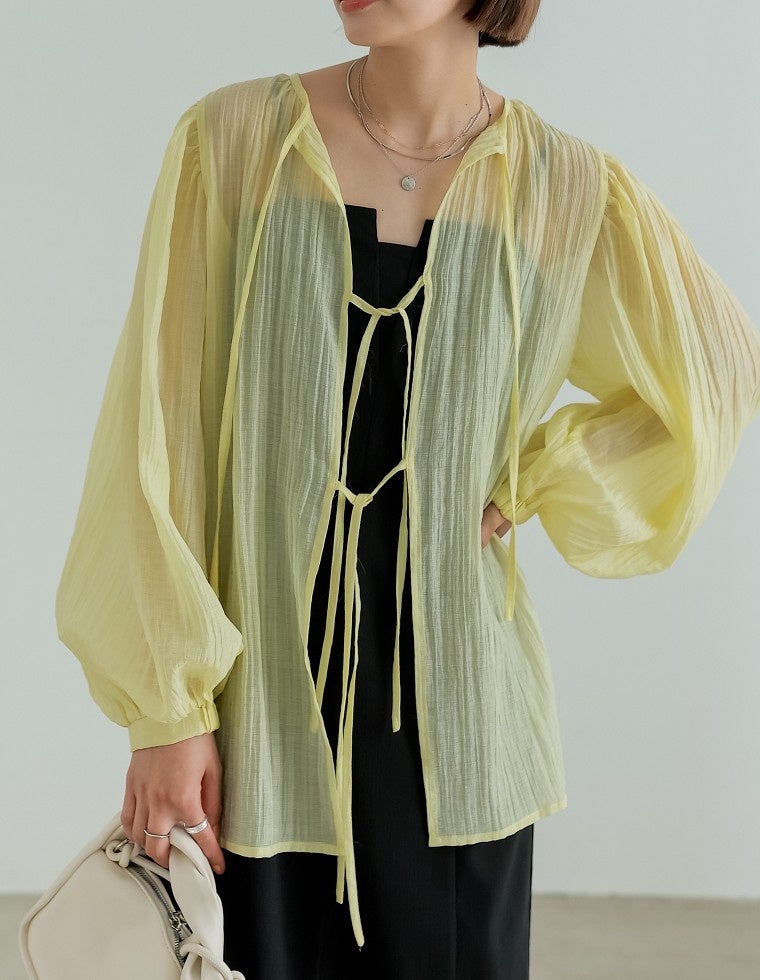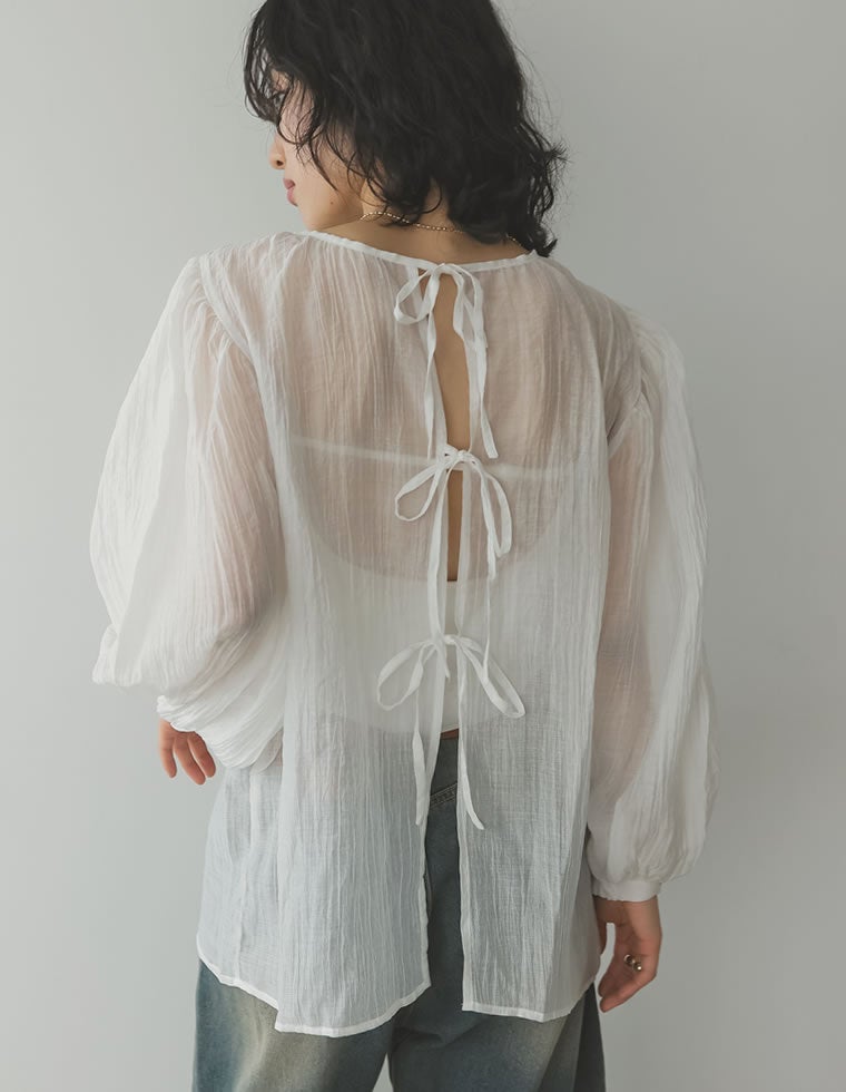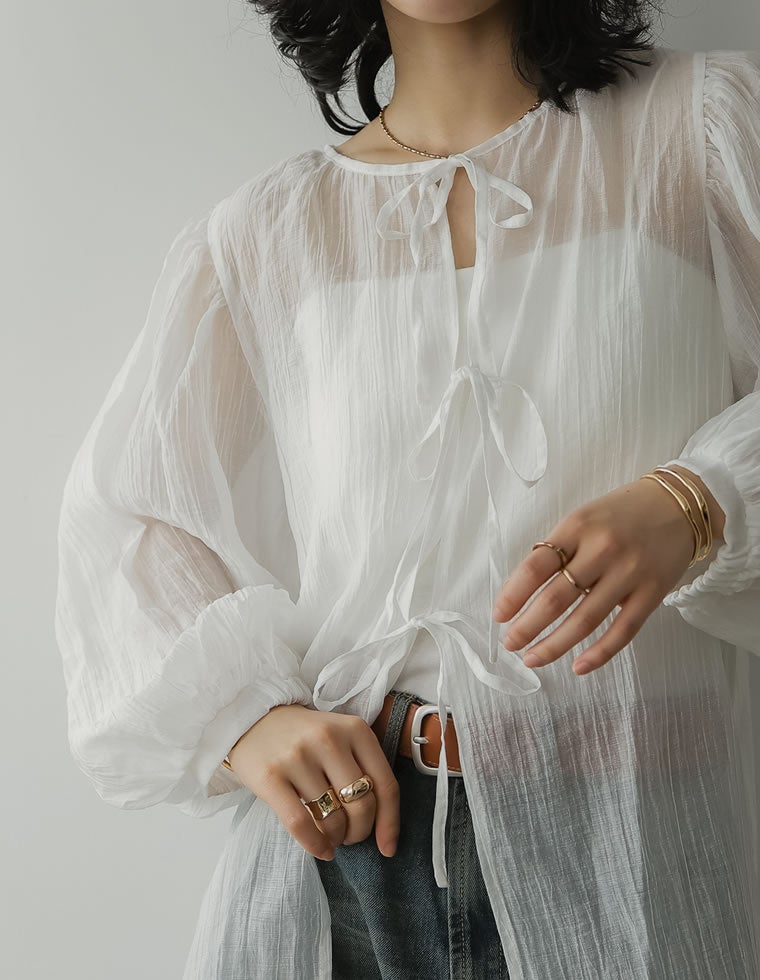 様々なスタイリングを楽しむシアー楊柳ブラウス