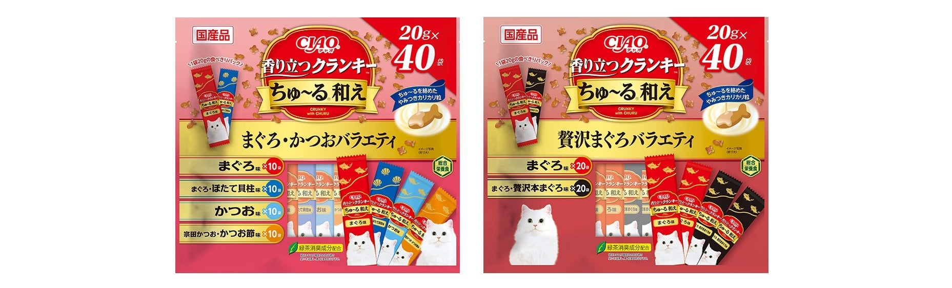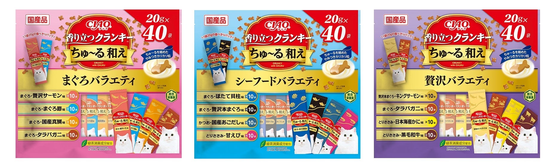 いなばペットフード 猫ちゃん用「CIAO 香り立つクランキーちゅ~る和え 40袋入り」を新発売!
