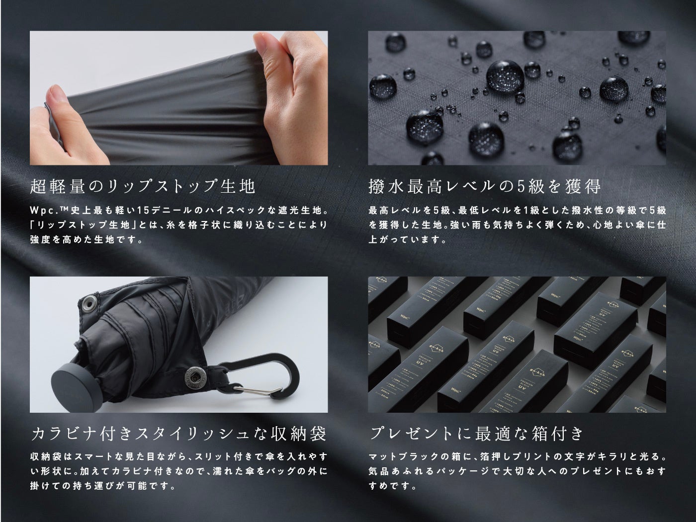 一般的に30~75デニール程度の傘生地が多い中で、go-kohシリーズは“15デニール”の超軽量生地を採用。日傘は、通常、日傘性能を高めるためにコーティングを重ねて重くなりがちですが、go-kohは「PREMIUM BLACK」と名付けた黒色のこの生地だからこそ、傘全体としての軽量化も実現しています。
