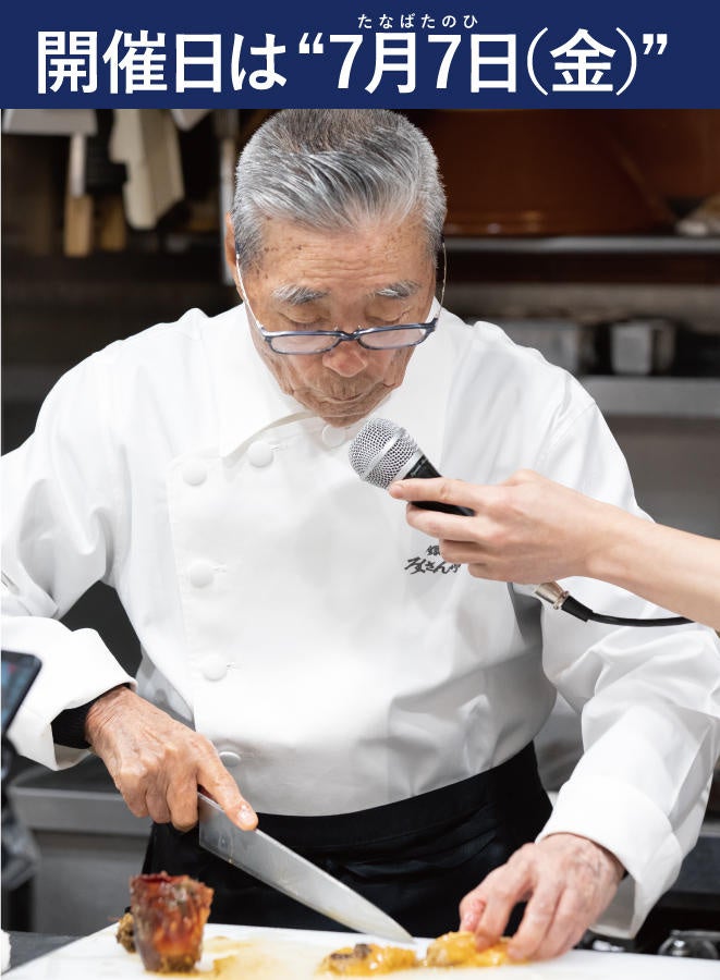 開催日は7月7日「七夕の日」。実はこの日は、今は亡き、最愛の奥様の誕生日。彦星と織姫の年に1度の逢瀬を叶えるべく、この日の料理は、奥様への想いも”味”になる。そして、ご参加者の皆様の幸せを願う特別なコース。ぜひご堪能してください。