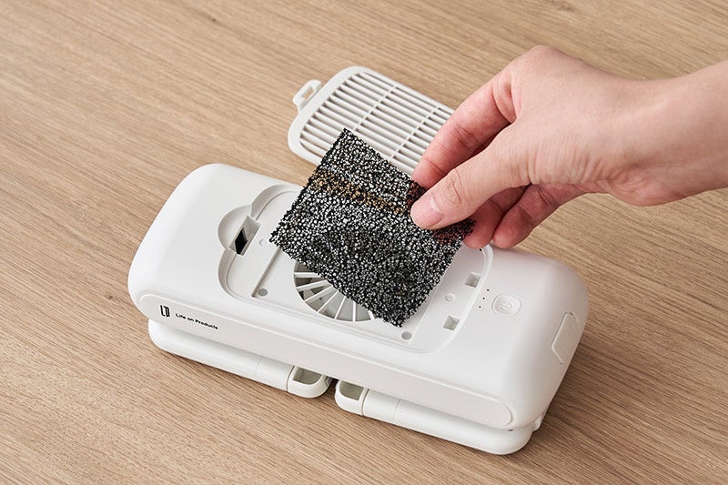 送風口には活性炭フィルターを採用し、ホコリやニオイを吸着。