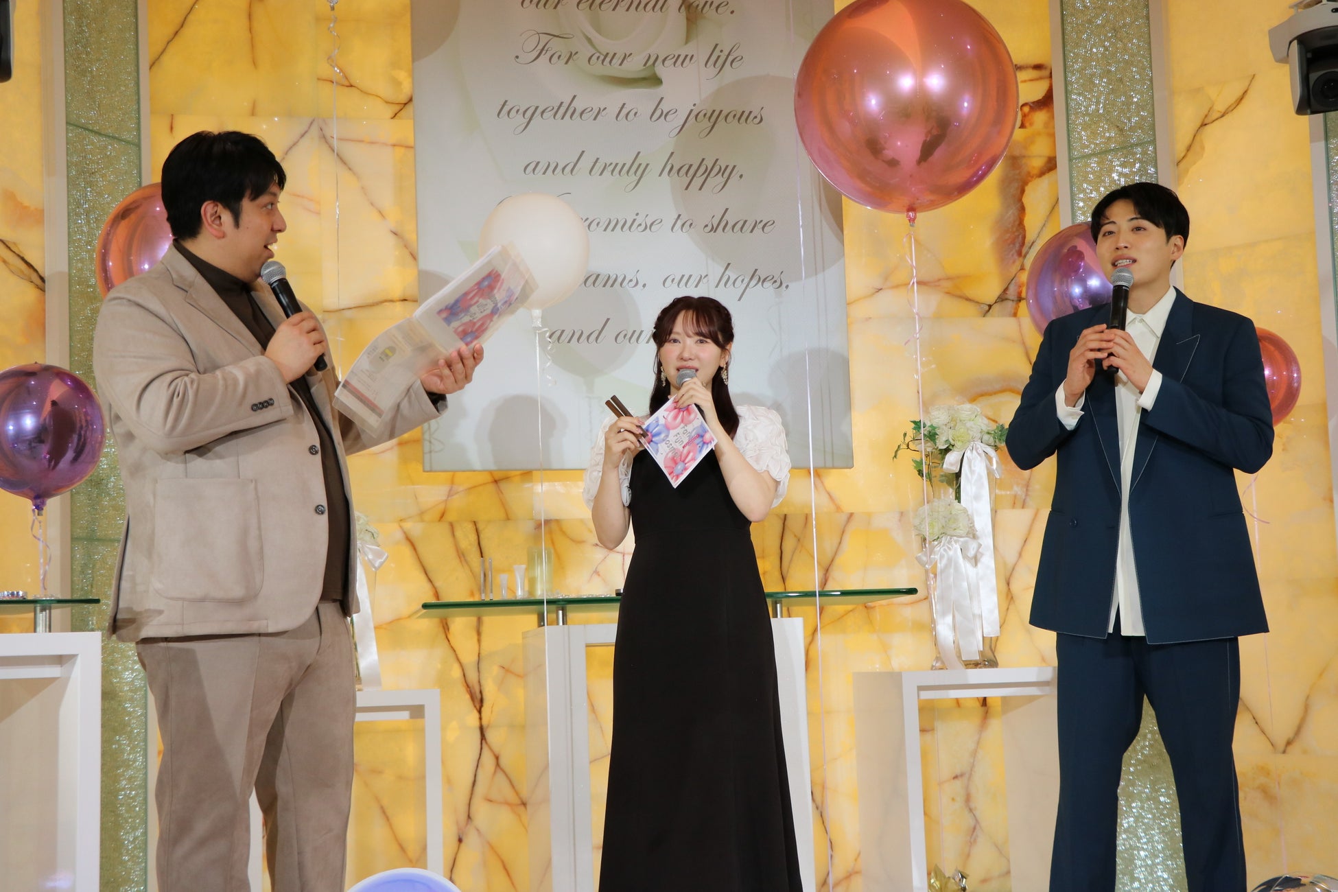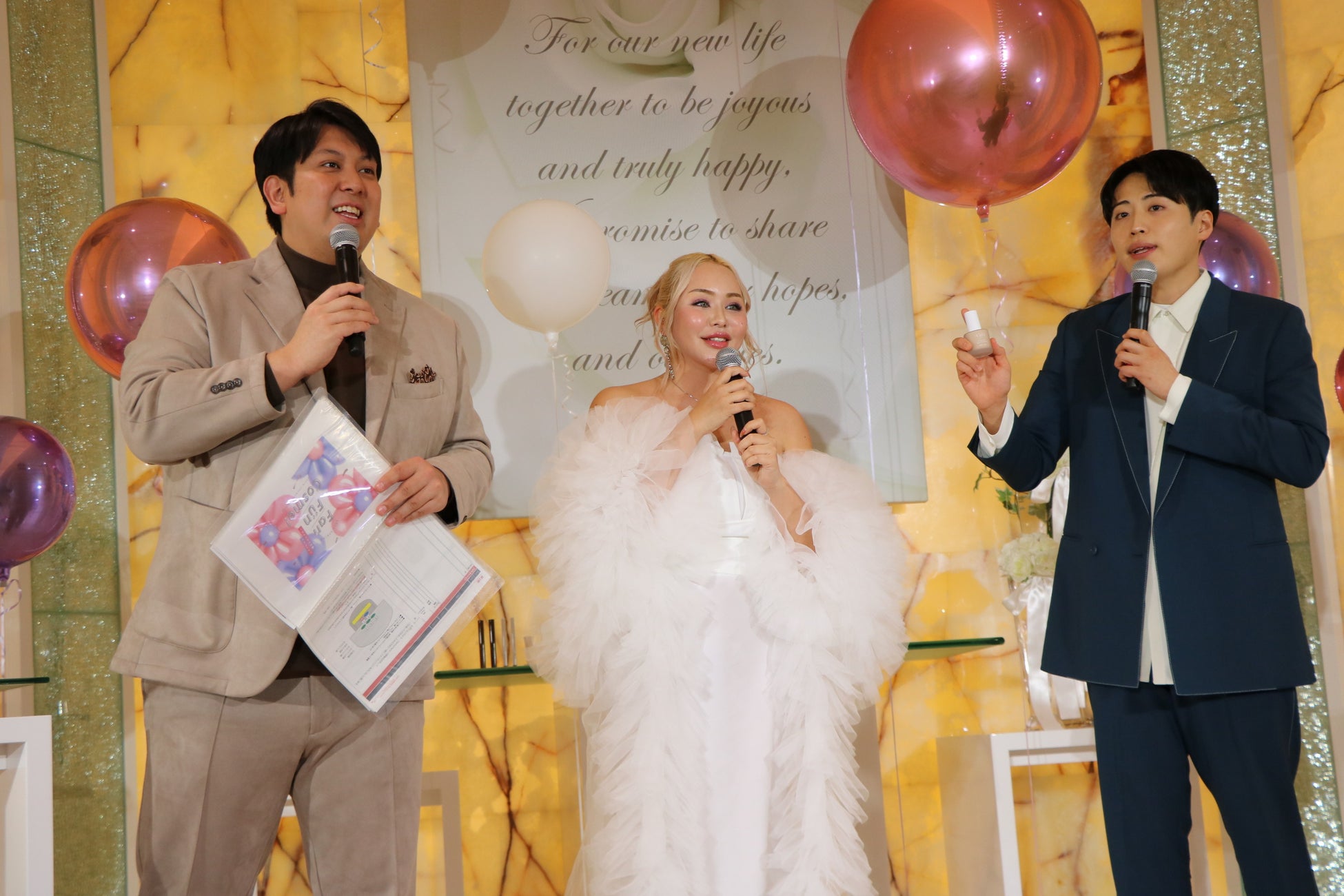 「光のチャペル」に特設されたステージでは、人気お笑いコンビ・レインボーの池田直人さん、ジャンボたかおさんのお二人をMCに迎え、人気美容系動画クリエイター・かわにしみきさん、マリリンさん、ヘアメイクアップアーティスト・佐々木一憲さんの豪華出演者との、ここでしか聞けないトークショーを開催しました。