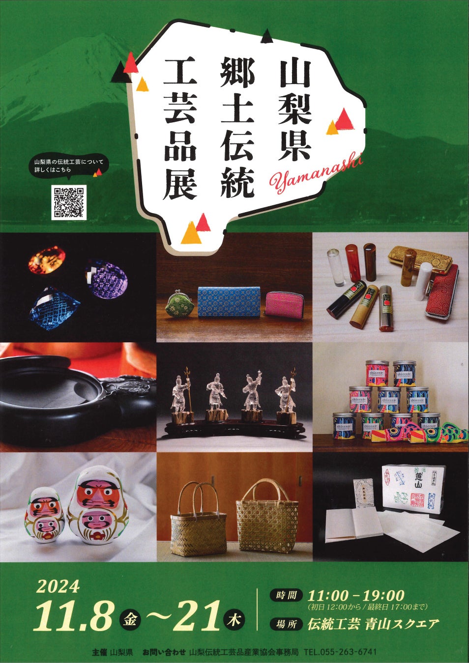 今年度も、県内外の多くの方に山梨県郷土伝統工芸品を知ってもらう機会とするとともに、首都圏への販路拡大を図るため、全国の伝統工芸品を広く取り扱っている「伝統工芸 青山スクエア」において「山梨県郷土伝統工芸品展」を開催します。