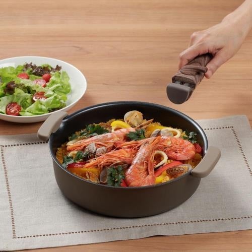 なかでも、「卓上鍋にもなる取っ手がとれる深型フライパン」は深さが7cmあるため、フライパンとしてはもちろん、食材を入れてそのまま鍋料理をお楽しみいただけます。