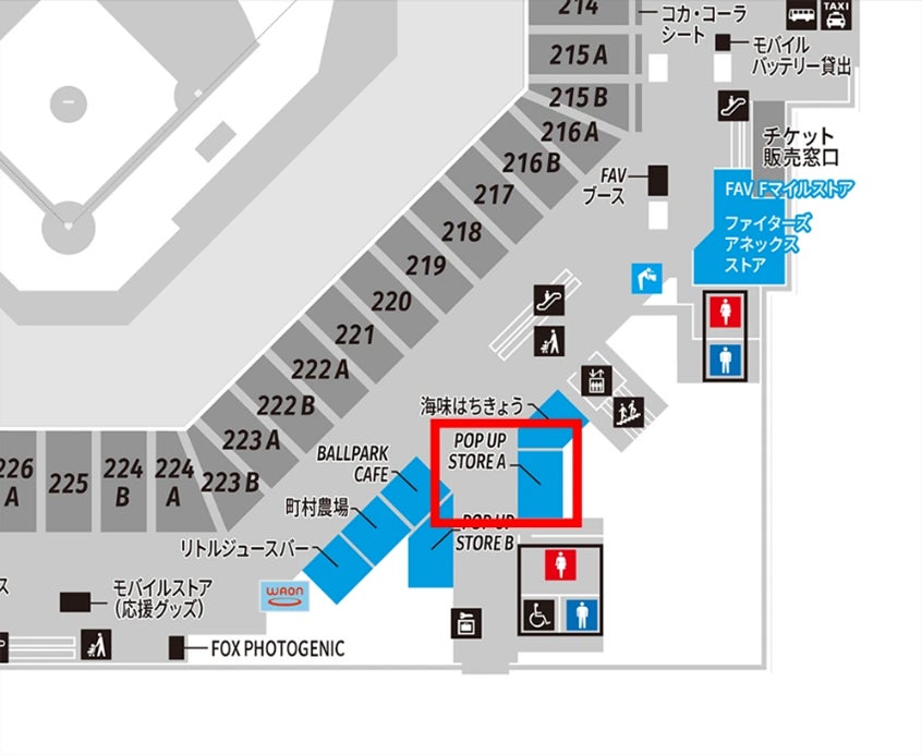 エスコンフィールド2F MAIN LEVEL Sec.221付近(旧POPUP STORE A)