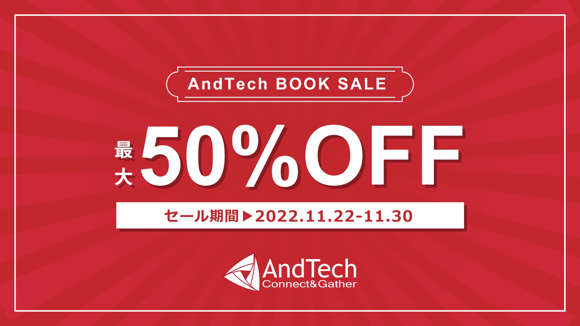 株式会社AndTech(本社:神奈川県川崎市、代表取締役社長:陶山 正夫)は、最大50%OFFの書籍年末大セール第一弾11月22日(火)~11月30日(水)の期間限定で開催いたします。
