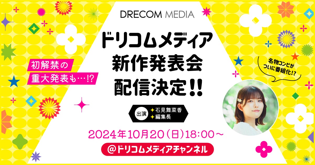 株式会社ドリコム(本社:東京都品川区、代表取締役社長:内藤裕紀)の出版・映像ブランド「ドリコムメディア」は、2024年10月でライトノベルレーベル「DREノベルス」の2周年、コミックレーベル「DREコミックス」の1周年を迎えます。これを記念して、声優・石見舞菜香が出演するWEB番組「ドリコムメディア新作発表会」の配信が決定したことをお知らせいたします。