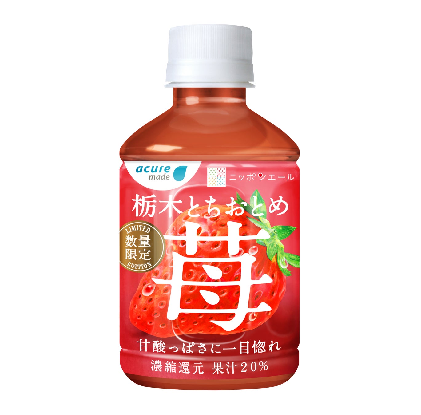 ・株式会社 JR 東日本クロスステーション ウォータービジネスカンパニー(所在地:東京都渋谷区、社長:西野 史尚)と全国農業協同組合連合会(所在地:東京都千代田区、代表理事理事長:野口 栄)(以下、JA全農)は、『acure made <アキュアメイド>』と『ニッポンエール』のWブランド商品として、栃木県産とちおとめ果汁を20%使用した飲料「栃木とちおとめ苺」を共同開発し、 2023 年3月7日(火)に発売します。