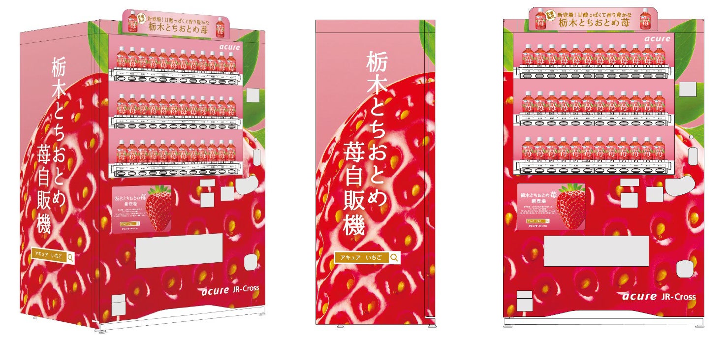 東京&宇都宮駅に専用ラッピングのいちごドリンク専用自販機も登場!