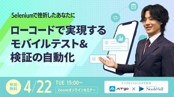 株式会社ニーズウェル(本社:東京都千代田区、代表取締役会長兼社長 船津浩三)は、2025年4月22日(火)15時より、六元素情報システム株式会社(本社:神奈川県横浜市、代表取締役社長 余澤洋平、以下「六元素情報システム」)・ニーズウェル共催の無料オンラインセミナー「ローコードで実現するモバイルテスト&検証の自動化」を開催します。