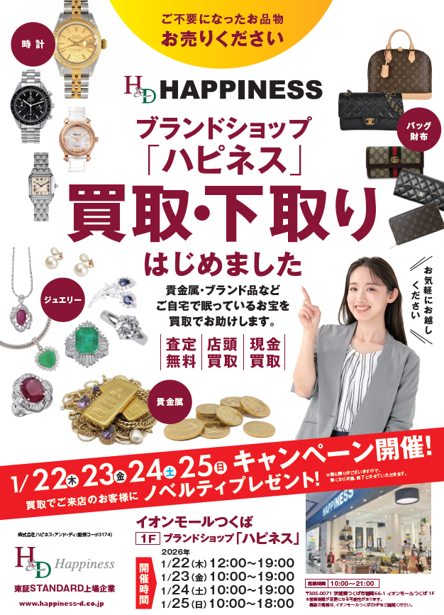 1月22日より「ブランドショップハピネスつくば店」にて買取・下取り催事を開催