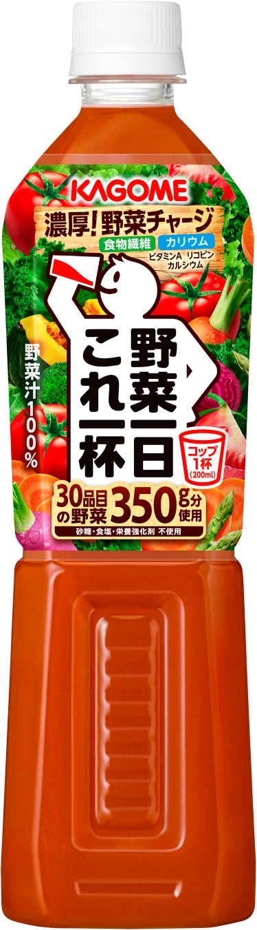 「野菜一日これ一本」は、忙しい毎日の中で、手軽に野菜を摂取していただくことを目的に開発した野菜飲料で、2004 年に発売し「これイチ」の愛称で親しまれる当社のロングセラーブランドです。トマトやにんじんなど30 品目の彩り豊かな野菜を 350g 分※1使用しています。砂糖や食塩、栄養強化剤を使用せず、野菜由来のおいしさと栄養※2にこだわっています。