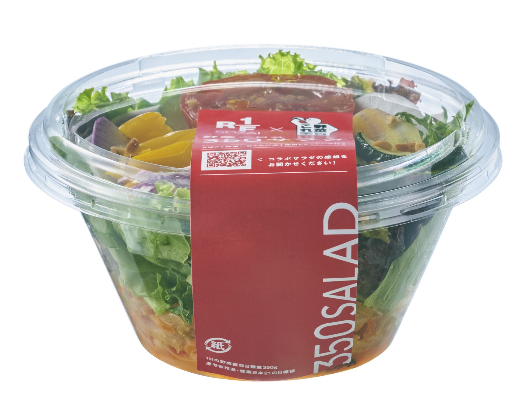 カゴメとロック・フィールドに共通する「野菜を気軽に、美味しく、楽しく摂取していただきたい」という思いを体現する商品として開発しました。ドレッシングにカゴメの野菜飲料「野菜一日これ一本」を使用※1し、共通のコンセプトである”350”をキーワードに、一日に必要な350g※2の野菜が摂れる設計となっています。カゴメの生鮮野菜「高リコピントマト」も使用した30種以上の素材が楽しめるサラダです。