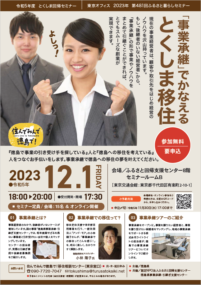 【12/1開催】”事業承継”でかなえるとくしま移住セミナー