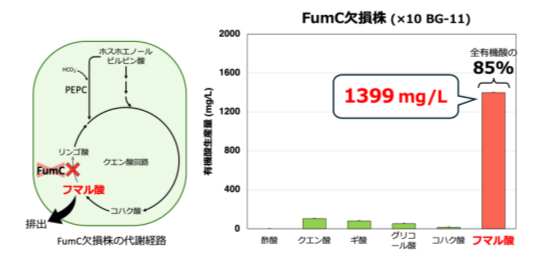 図3. ×10 BG-11におけるFumC欠損株の有機酸生産量