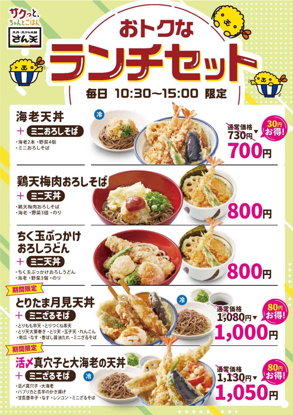 とりたま月見天丼をお得に楽しめる!ランチセットが新登場