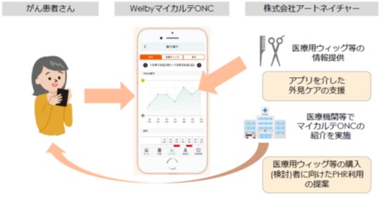 毛髪に関する総合サービスを提供する株式会社アートネイチャー(本社:東京都渋谷区 代表取締役会長兼社長:五十嵐祥剛)は、株式会社Welby(本社:東京都中央区 代表取締役 比木 武)が展開するがん手帳アプリ『WelbyマイカルテONC』のサービス利用者のサポート拡充に向けた業務提携を行ったことをお知らせいたします。