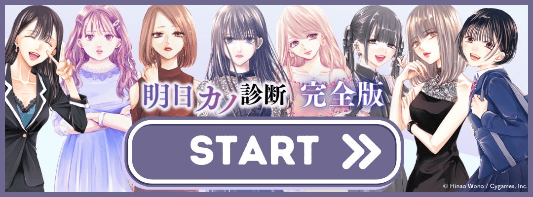 「明日カノ診断完全版」は、累計発行部数560万部を超える人気マンガ『明日、私は誰かのカノジョ』とコラボレーションした診断コンテンツです。2021年9月に公開した「明日カノ診断」(診断実施回数約107万回。※2023年9月7日時点、当社調べ)に診断結果を3タイプ追加し、物語の進行に合わせて既存の診断結果もアップデートしました。
