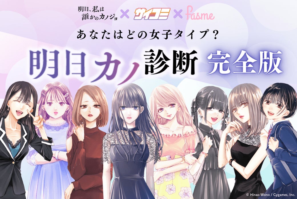 女性向けメディア「fasme」、累計発行部数560万部超えの人気マンガ『明日、私は誰かのカノジョ』とコラボレーションした診断コンテンツの完全版を公開