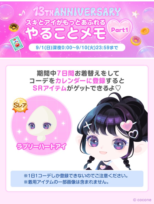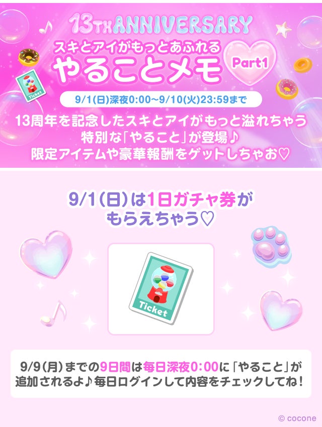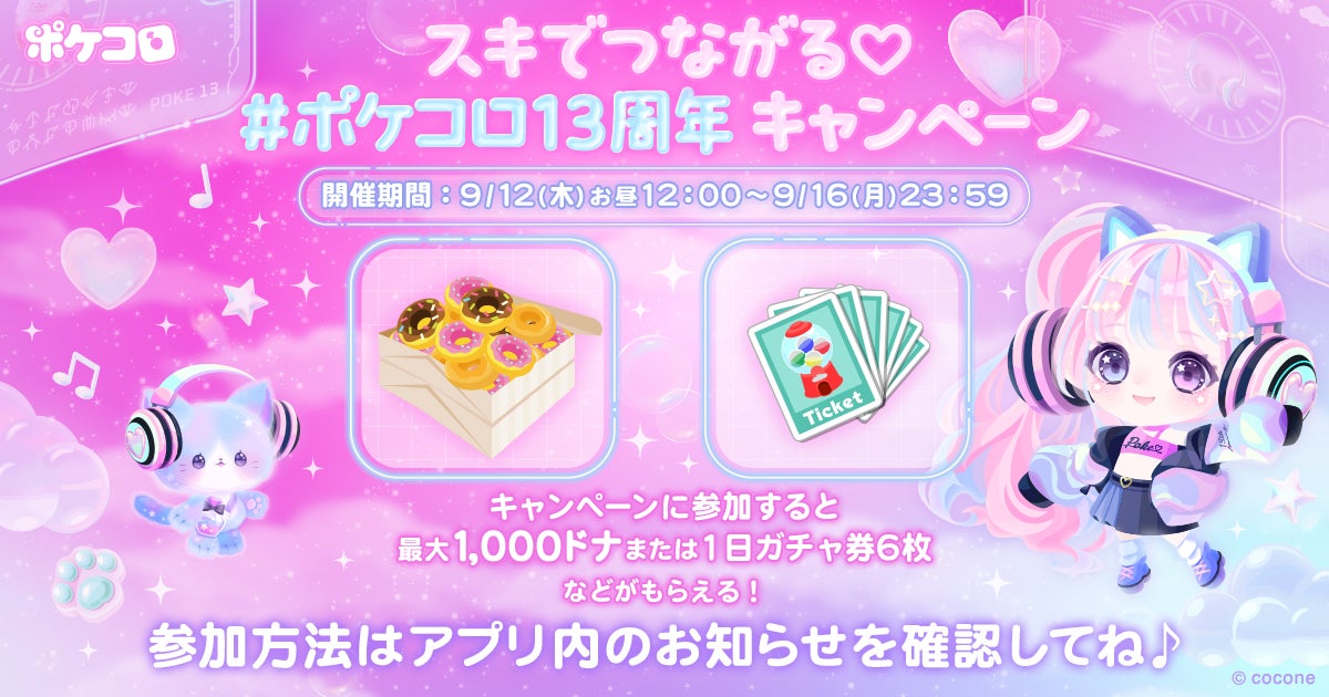 ココネ株式会社(以下「ココネ」)は、2,400万人のお客様に支持されるアバターアプリ『ポケコロ』において、サービス開始から今年で13周年を迎えるにあたり、特別なイベントやキャンペーンを9月1日(日)より順次開始しています。