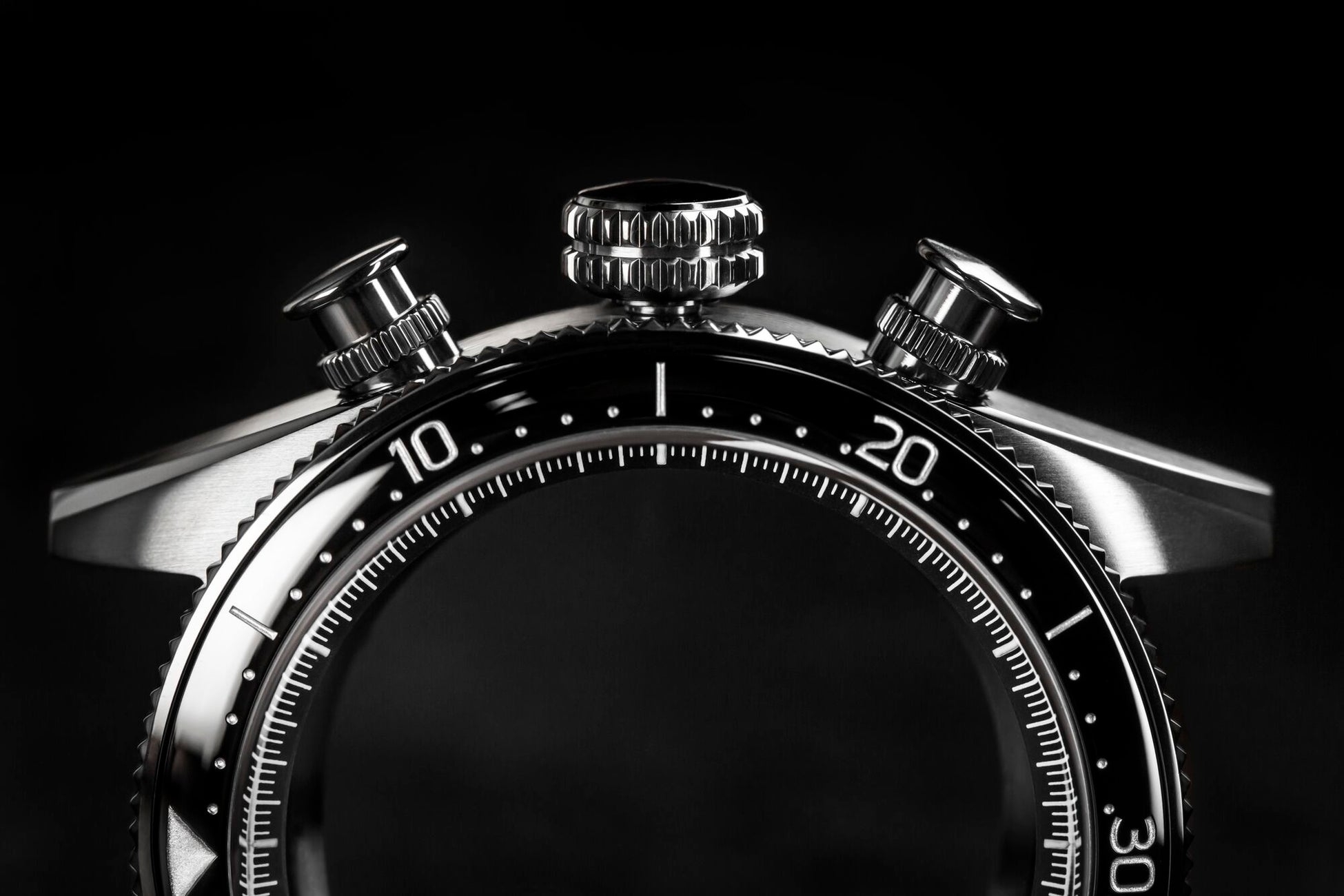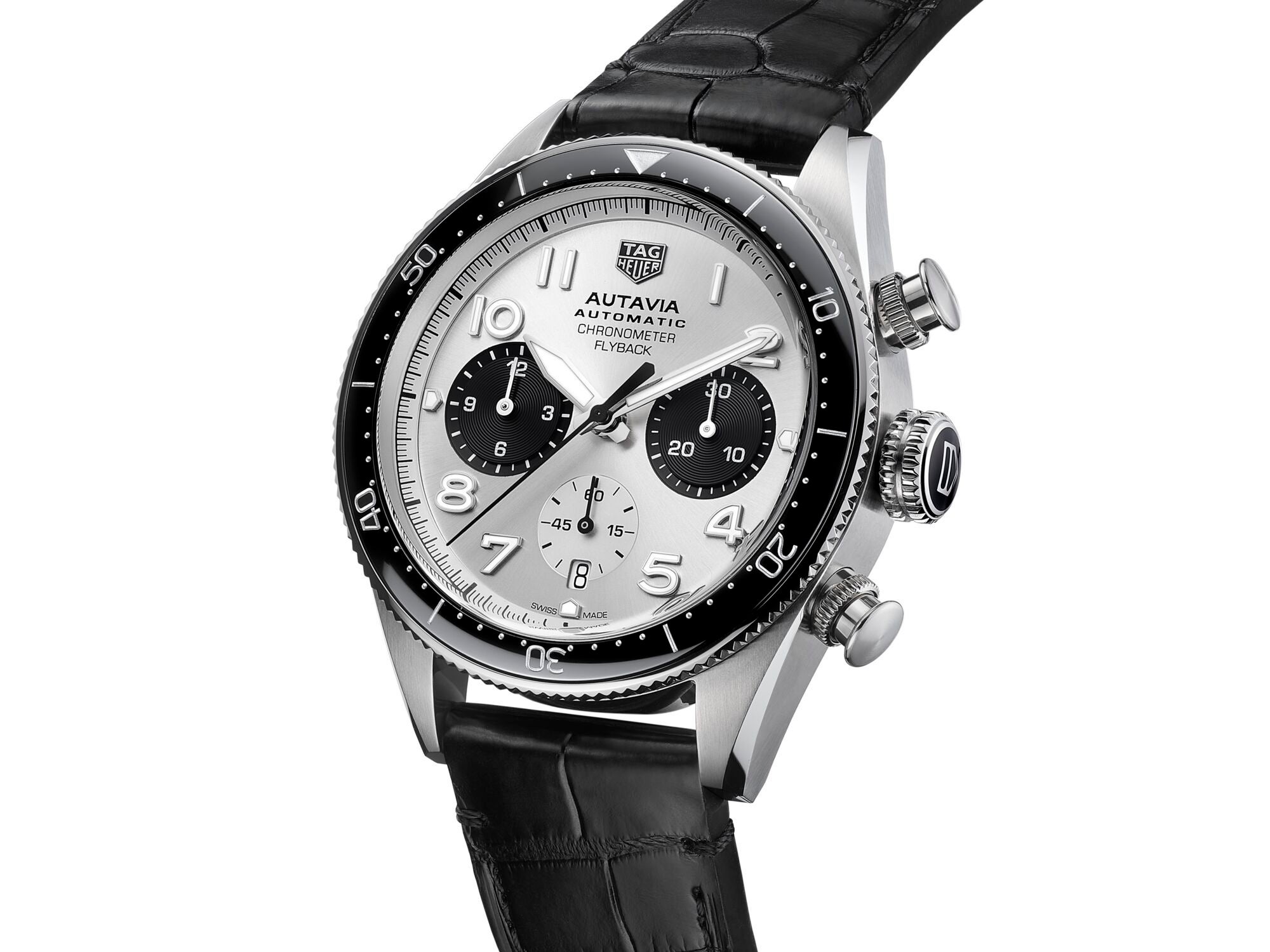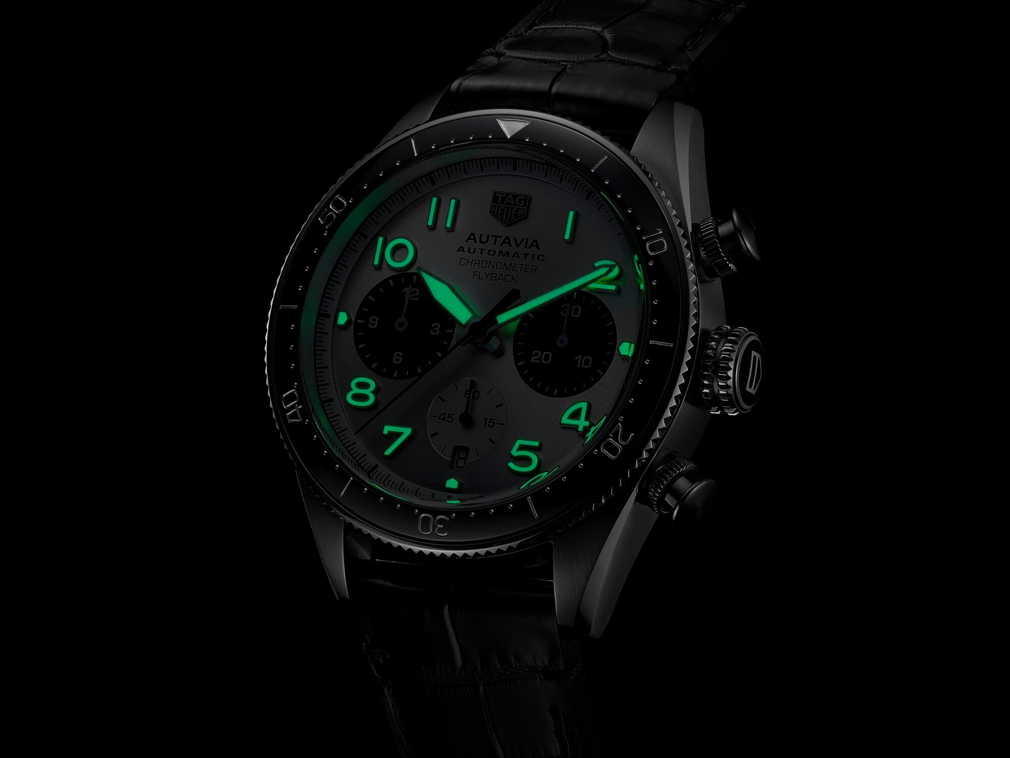 オータヴィアのDNAを受け継ぐはっきりとした特徴のひとつである双方向回転ベゼルと、フロントとバックのサファイアクリスタルは、タグ・ホイヤーの新しいオータヴィア クロノグラフの耐久性と実用性を強化しています。