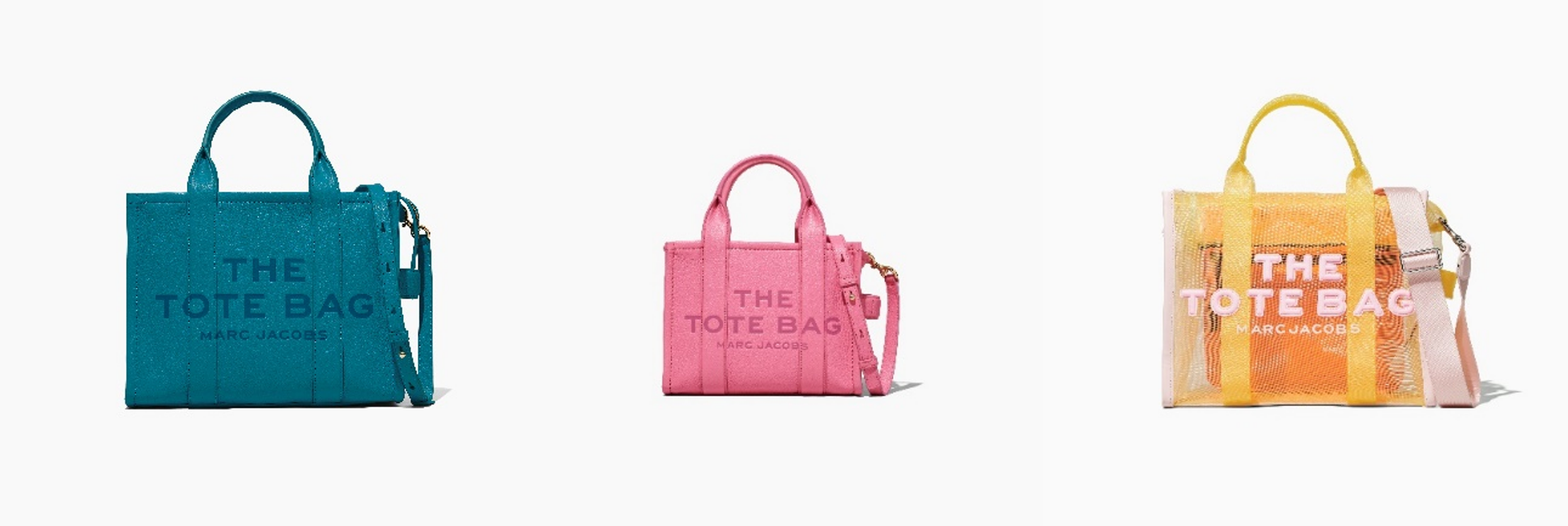 左から、THE LEATHER SMALL TOTE BAG ¥71,500 /THE MINI LEATHER TOTE BAG ¥59,400 /THE MESH SMALL COLORBLOCK TOTE BAG ¥39,600