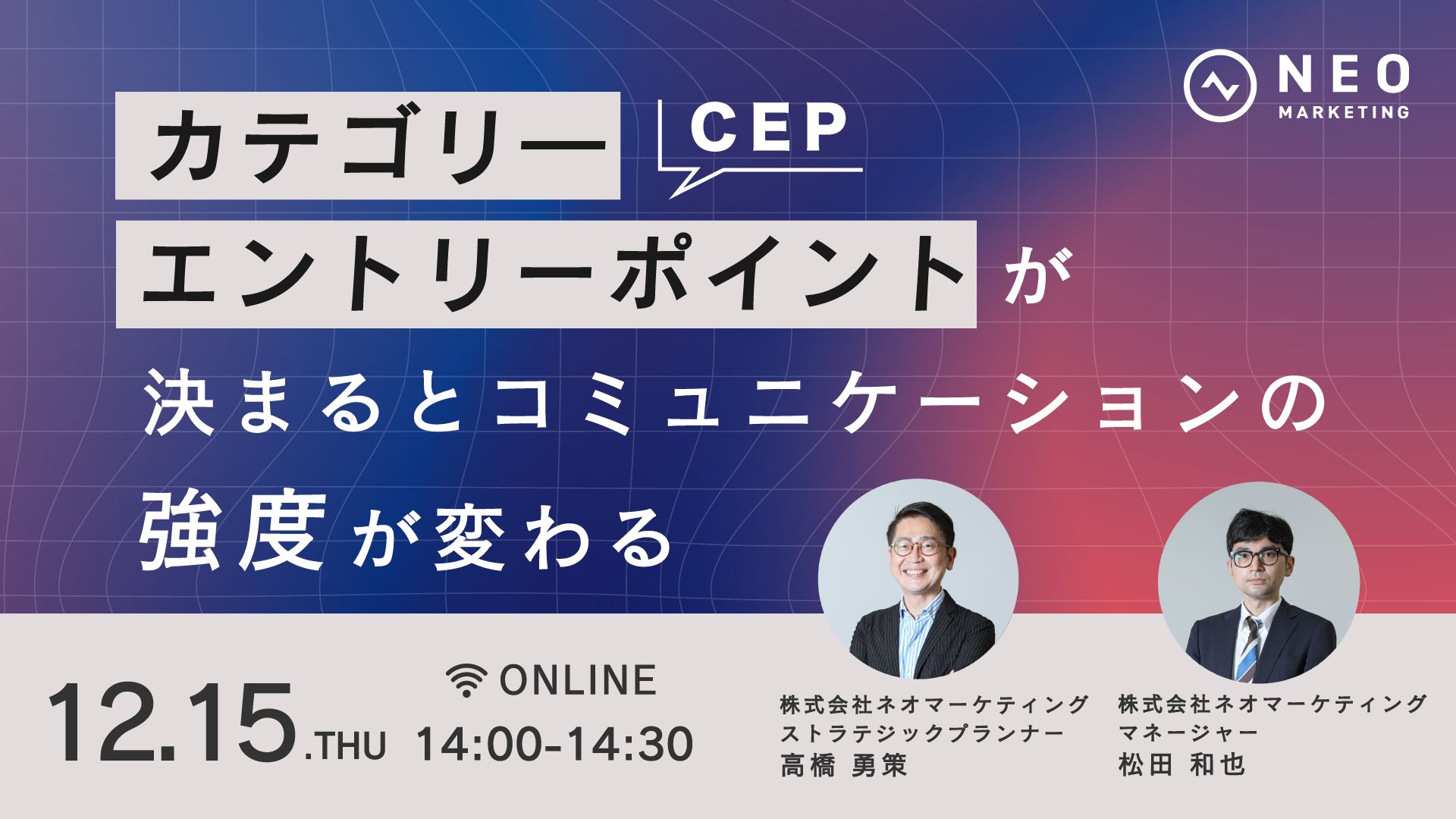 【明日開催!無料ウェビナーのお知らせ】カテゴリ―エントリーポイント(CEP)が決まるとコミュニケーションの強度が変わる 株式会社ネオマーケティング