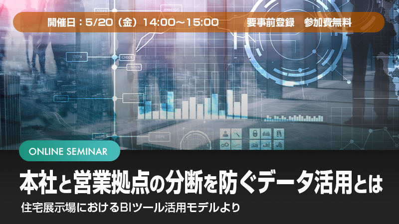 本セミナーでは、BIツール「CrossData」によるアウトプットの実例として、住宅展示場における商談クロージング向上を目指したダッシュボードをご紹介します。これにより、具体的なデータ共有のイメージや、それによるメリットを把握することができます。これまで本社と営業拠点(販社)の分断に悩まされてきた企業の担当者、これからBIツールへの理解を深めていきたいという方は必見です。