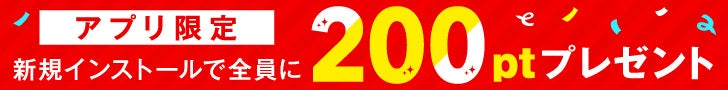 さらにアプリ新規インストール+新規会員登録で200ptプレゼントも同時開催中!