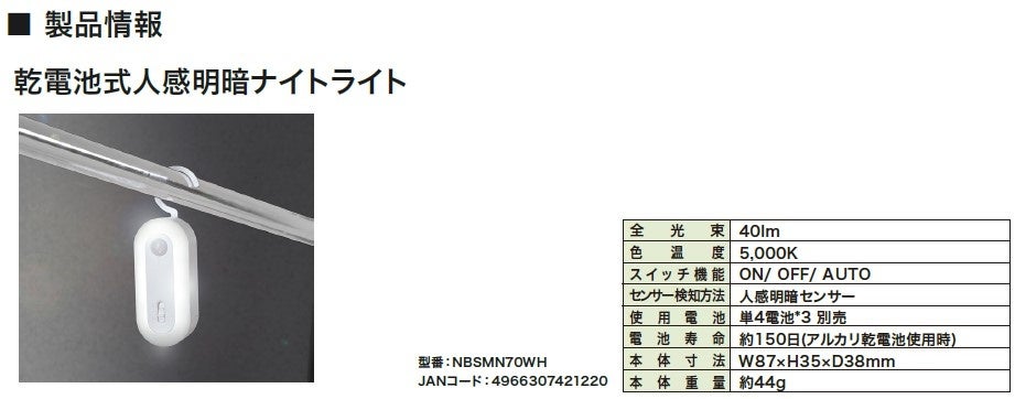 インテリア家電製品および、PCサプライ品の製造販売を手掛ける株式会社ヤザワコーポレーションは、乾電池式人感明暗ナイトライトを4月下旬頃に発売いたします。
