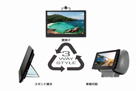 壁掛け、スタンド置き、車載可能の3WAY STYLE