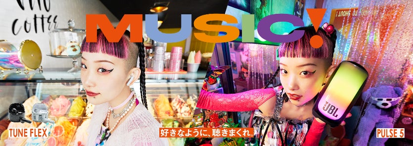 動画内ではながら聴きと集中聴きの2ウェイで楽しめる完全ワイヤレスイヤホン「JBL TUNE FLEX」と、シーンに合わせた光と音で演出する唯一無二のポータブルオーディオ「JBL PULSE 5」を使用し、様々な場面で音楽を楽しむ姿が表現されています。