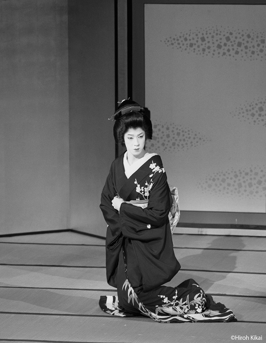 鬼海さんとお目にかかりましてから、もう半世紀が過ぎました。私が20代の頃に、名古屋で初めて撮っていただきまして、その後も数々の舞台写真を撮っていただきました。 ここに展示されております「鶴の巣ごもり」、「盟三五大切」、「通夜物語」など、特に中日劇場で演じました「通夜物語」は大変印象深いものでございます。