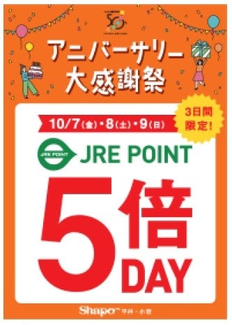 7日(金)~9日(日)は3日間限定JRE POINT5倍デーを実施!